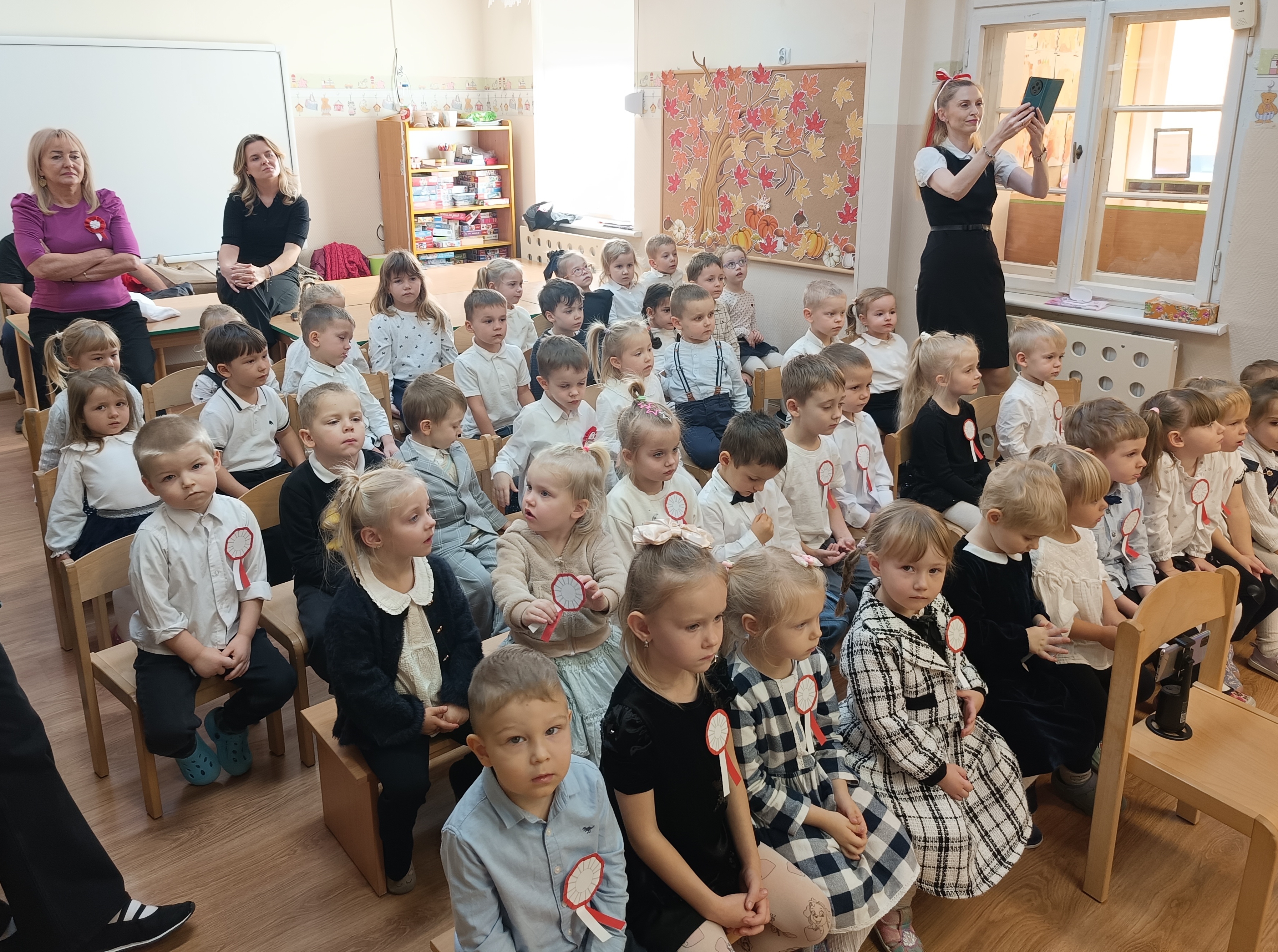 W naszym przedszkolu odbyła się uroczysta akademia z okazji Święta Niepodległości, przygotowana przez dzieci z grupy III. Podczas wydarzenia wszyscy wspólnie odśpiewali hymn narodowy, oddając hołd naszej Ojczyźnie.