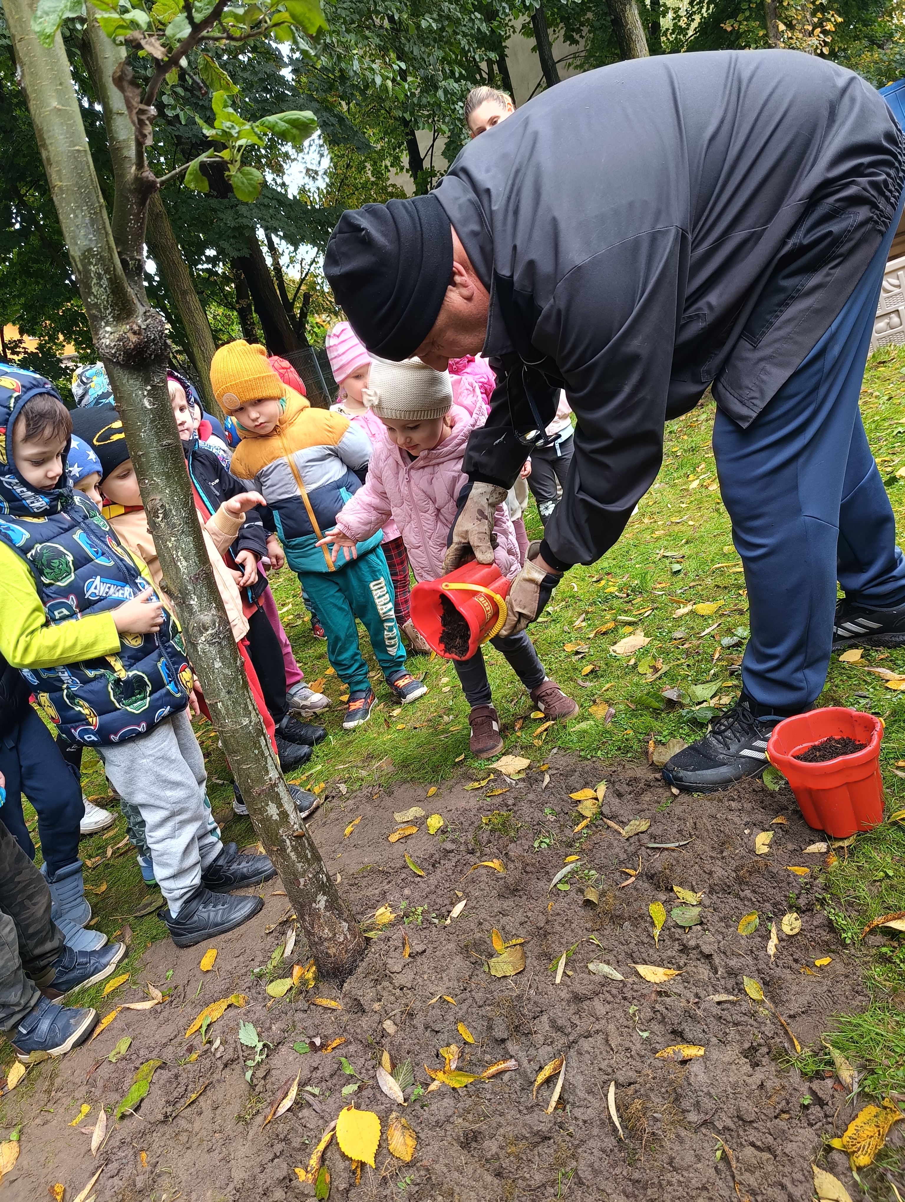 Dzieci z zainteresowaniem słuchały bajki o Landsberczyku, śpiewały piosenki i recytowały wiersze o jabłkach, a także wspólnie szykowały jabłonki Renety Landsberskiej do zimowego odpoczynku.