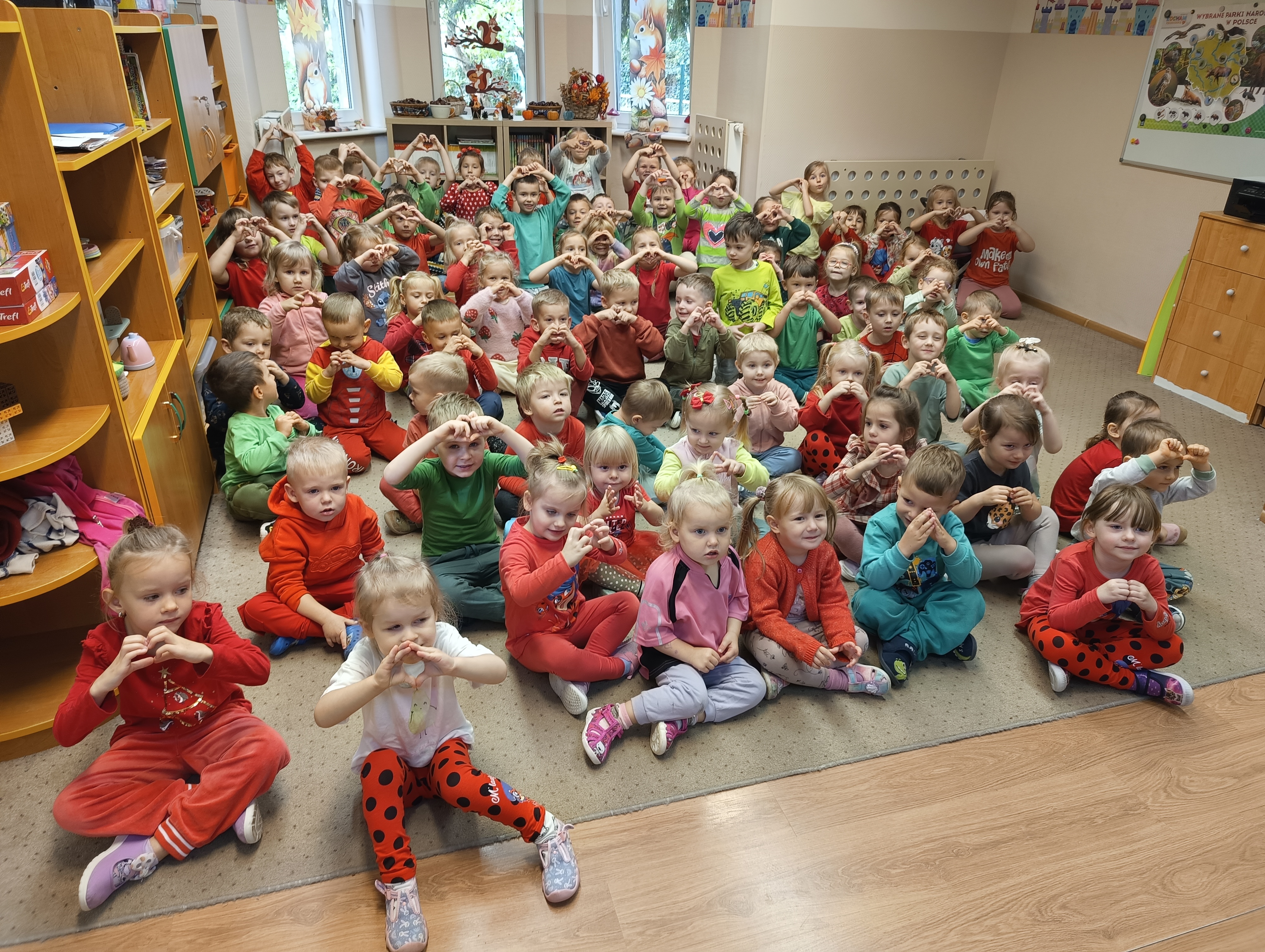7 października obchodziliśmy w przedszkolu Dzień Jabłka – święto zdrowia, radości i kolorów! Tego dnia w salach dominowały barwy czerwieni i zieleni, bo właśnie w takich strojach przyszły ubrane nasze przedszkolaki.
