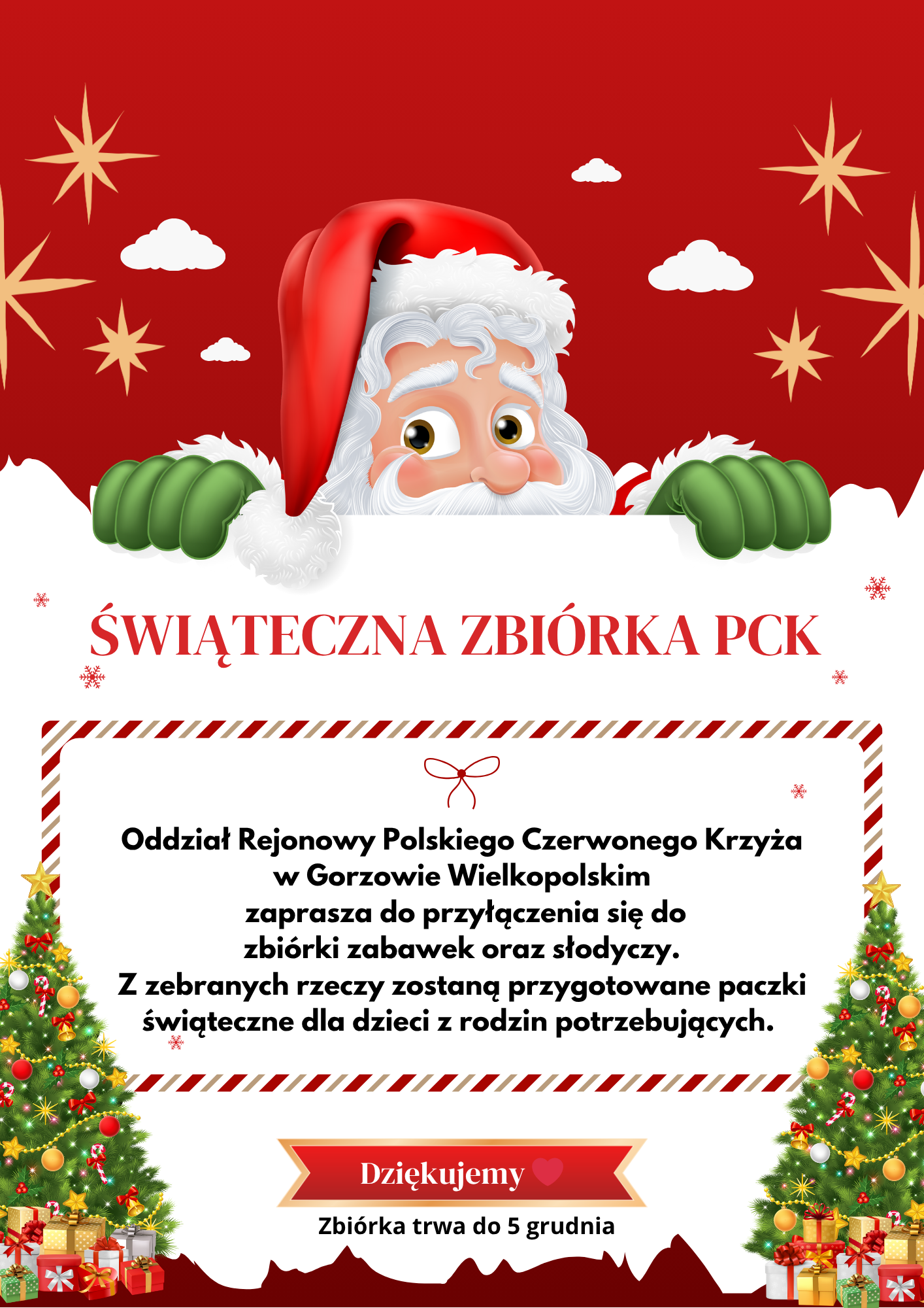 Z radością informujemy, że nasze przedszkole włącza się w Świąteczną Zbiórkę Polskiego Czerwonego Krzyża, organizowaną przez Oddział Rejonowy PCK w Gorzowie Wielkopolskim.